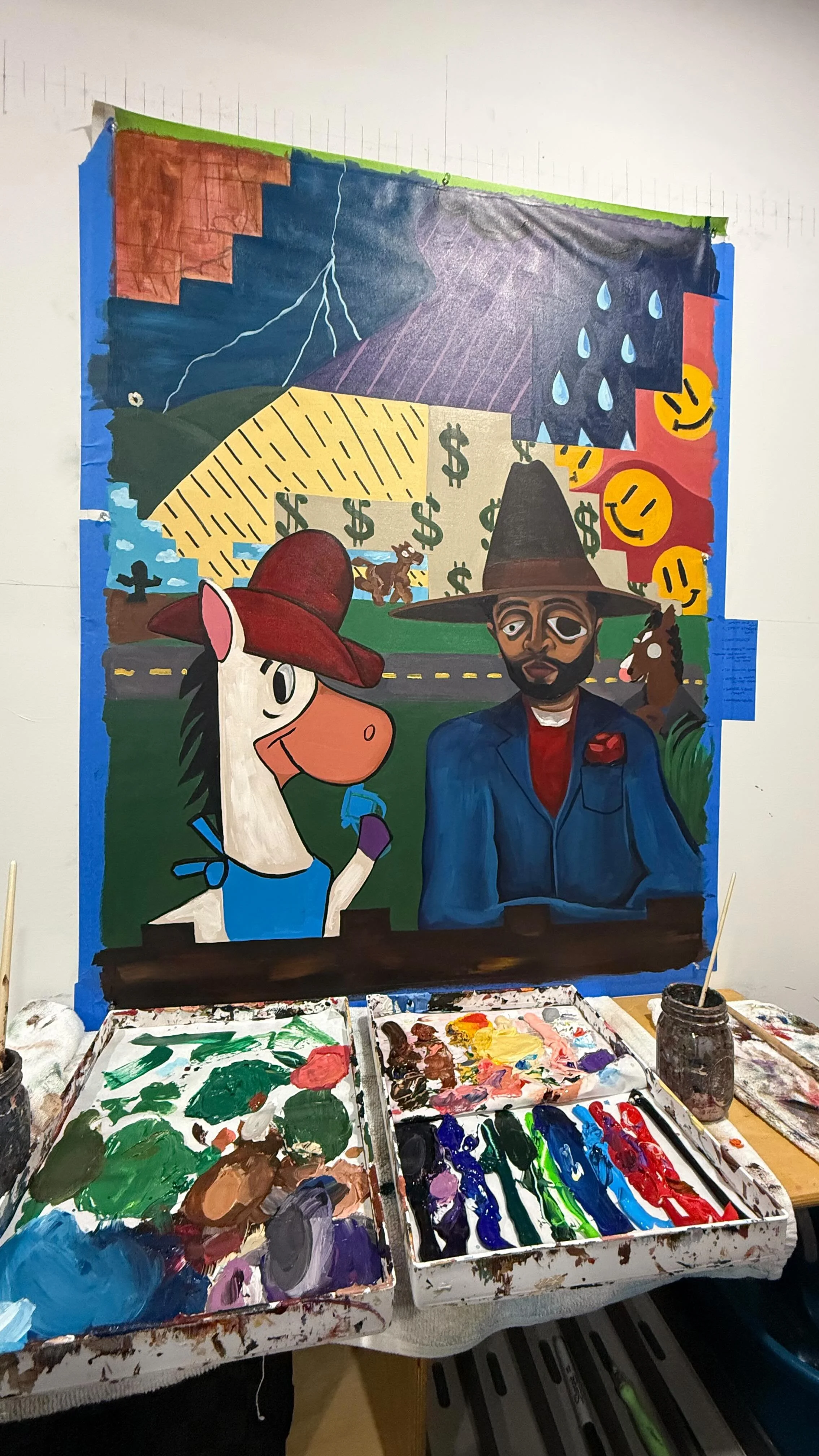 Dylan Collazo is not just a self-taught contemporary artist—he’s a storyteller, a dreamer, and a builder of legacies. Through his art, he transforms the raw complexities of life into profound visual narratives, blending cultural and historical references with bold symbolism and emotional depth.