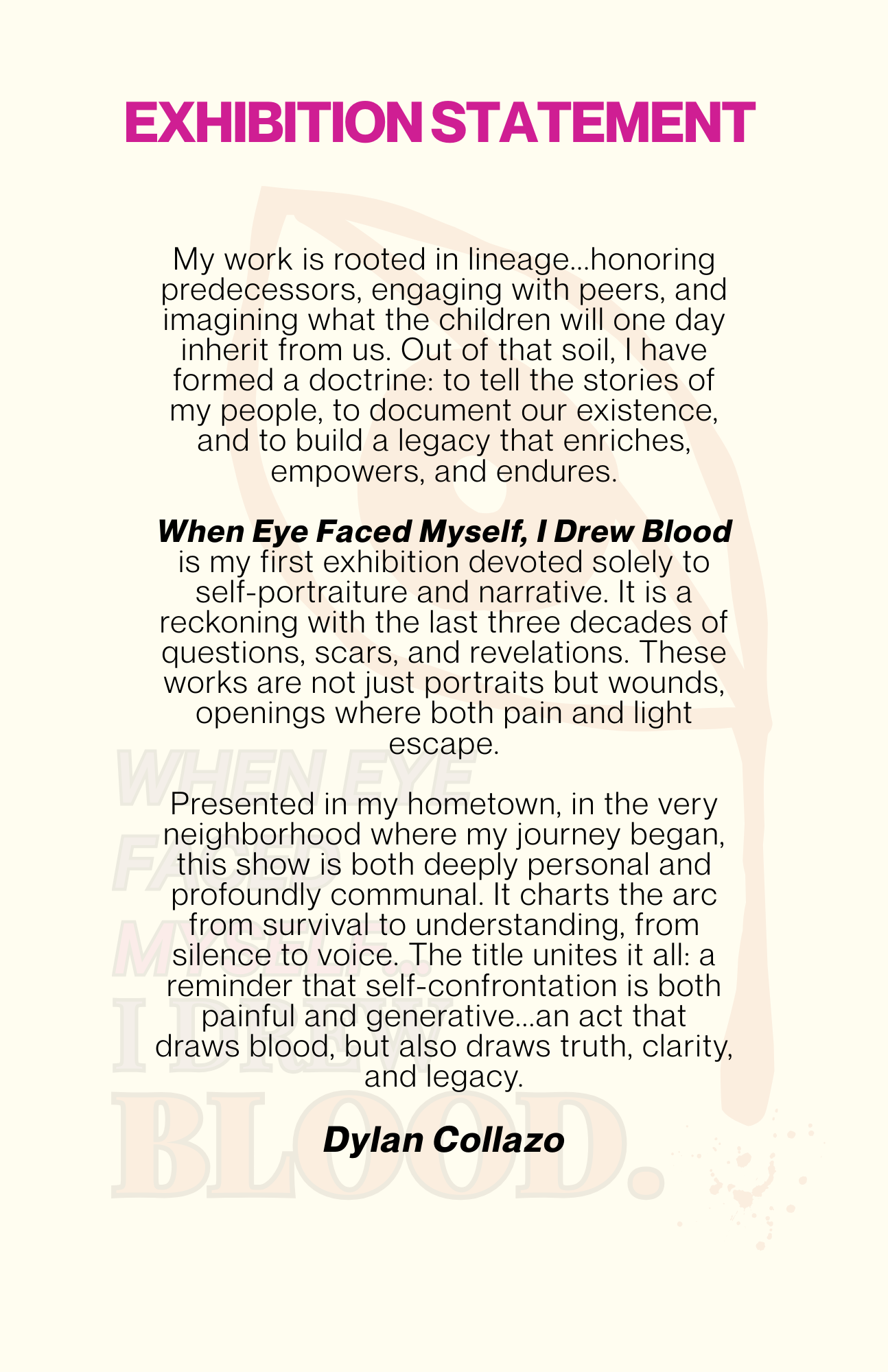 When Eye Faced Myself, I Drew Blood is Collazo’s first exhibition devoted solely to self-portraiture and narrative. Honest, raw, and deeply personal.